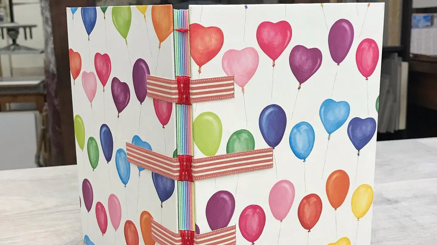 Les cahiers de ce carnet sont cousus sur 3 rubans fantaisies ou en cuirs qui seront collés à la couverture cartonnée.