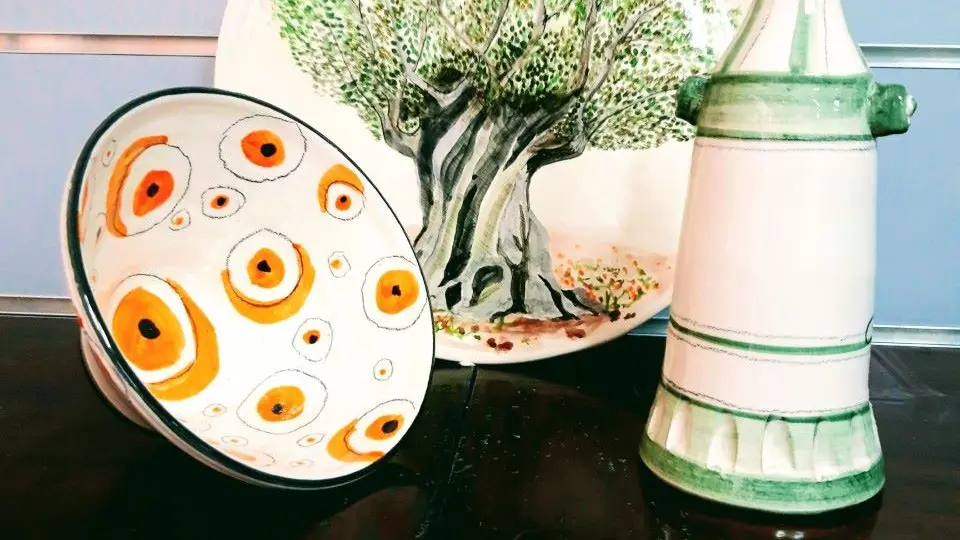 Création de petites séries d'objets utilitaires, au tour, en faïence blanche décorés avec des oxydes colorés.