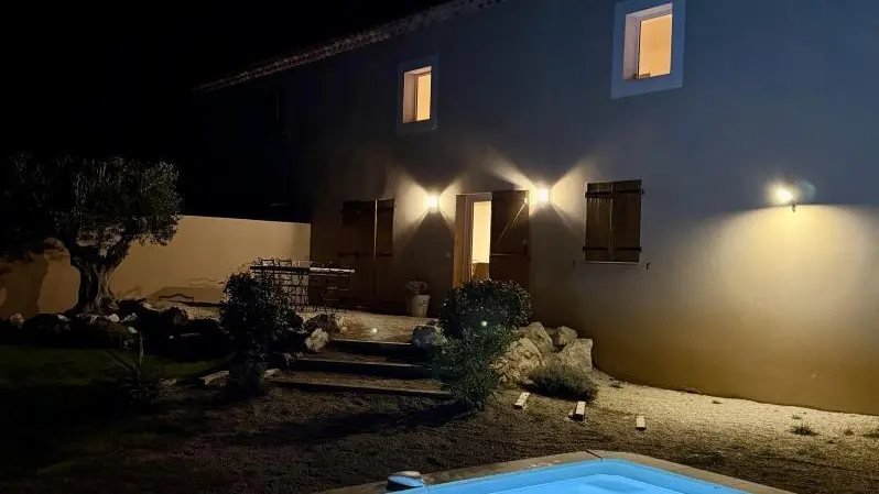 En pleine campagne, à 1.5 km du centre village, entre Sainte Baume et Calanques (Cassis est à 20 km), très belle maison mitoyenne à un autre gîte mais sans vis-à-vis, avec piscine privative (4x2.5, profondeur 1.30, ouverte de mai à septembre), sécurisée (alarme), nettoyée 1fois/semaine et terrain de 400 m² avec parking.