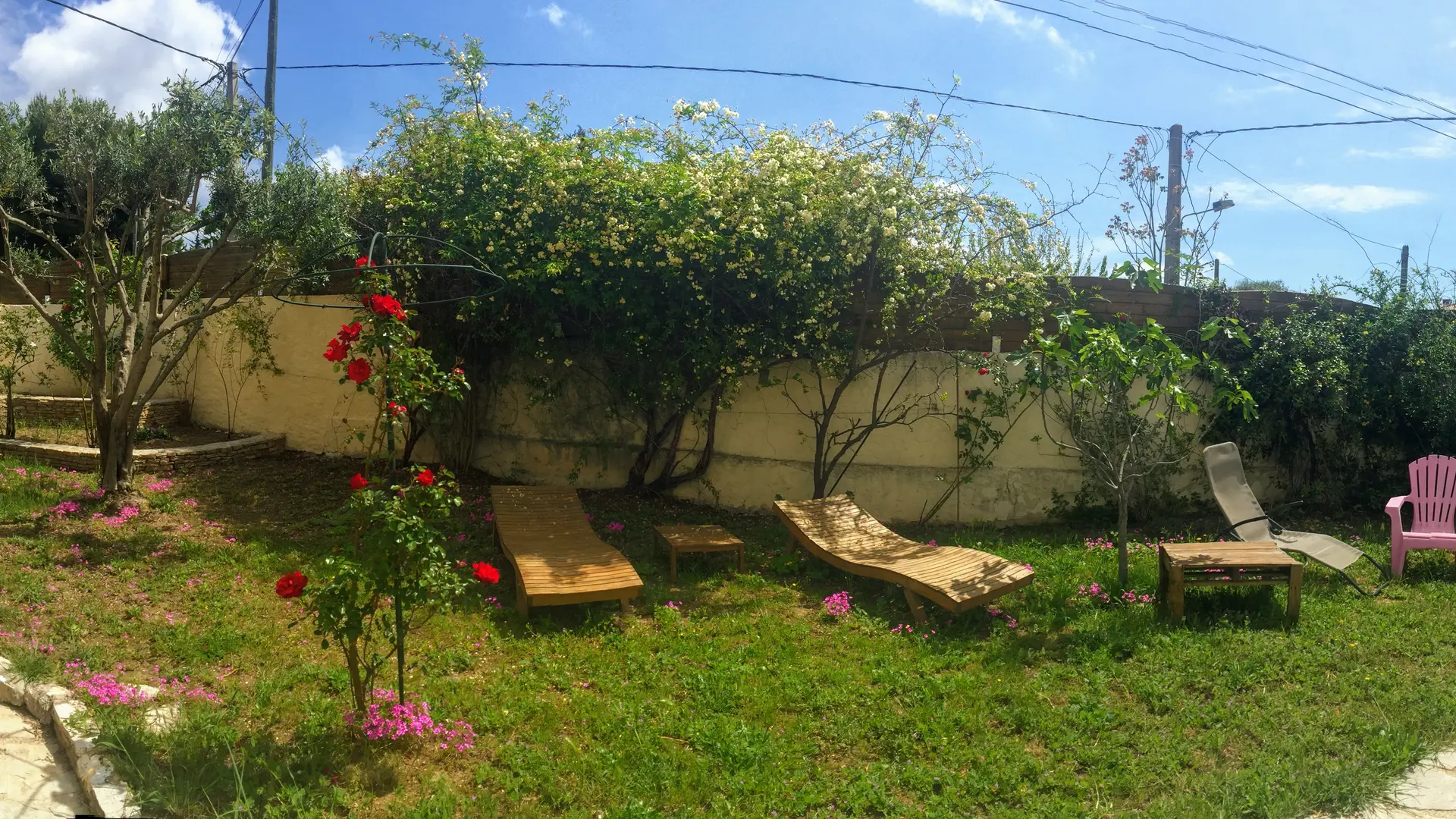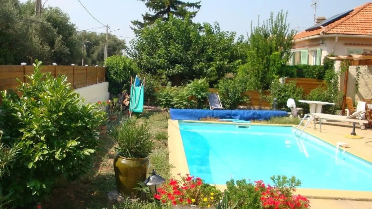 Rez de jardin, pelouse, piscine (partagée uniquement avec les propriétaires).