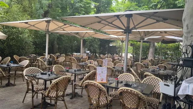 Profitez d’un moment agréable sur la belle terrasse ombragée, idéale pour savourer votre repas en plein air dans une ambiance conviviale et chaleureuse.