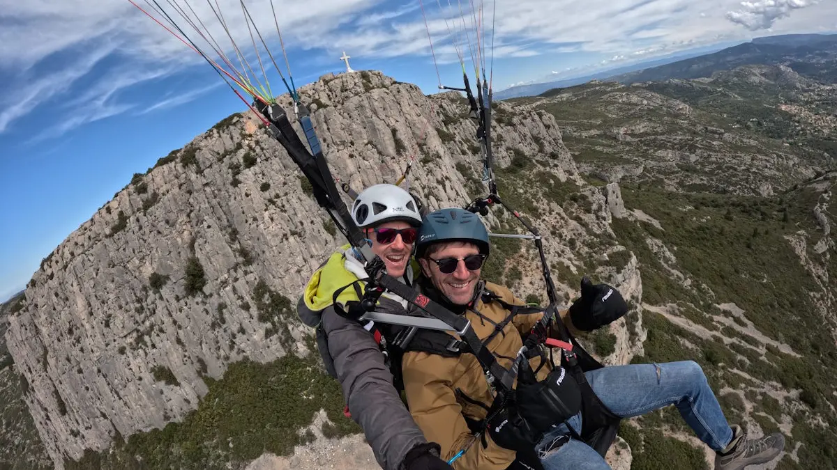 Le concept ? Votre accompagnateur, moniteur de parapente, vous donne rendez-vous au pied du célèbre massif de Garlaban. Lors de la marche d'approche qui mène au point d'envol, vous profitez de la nature et de magnifiques points de vue. Puis décollage en douceur pour un vol biplace en tandem avec le moniteur et atterrissage à proximité du lieu de rendez-vous.