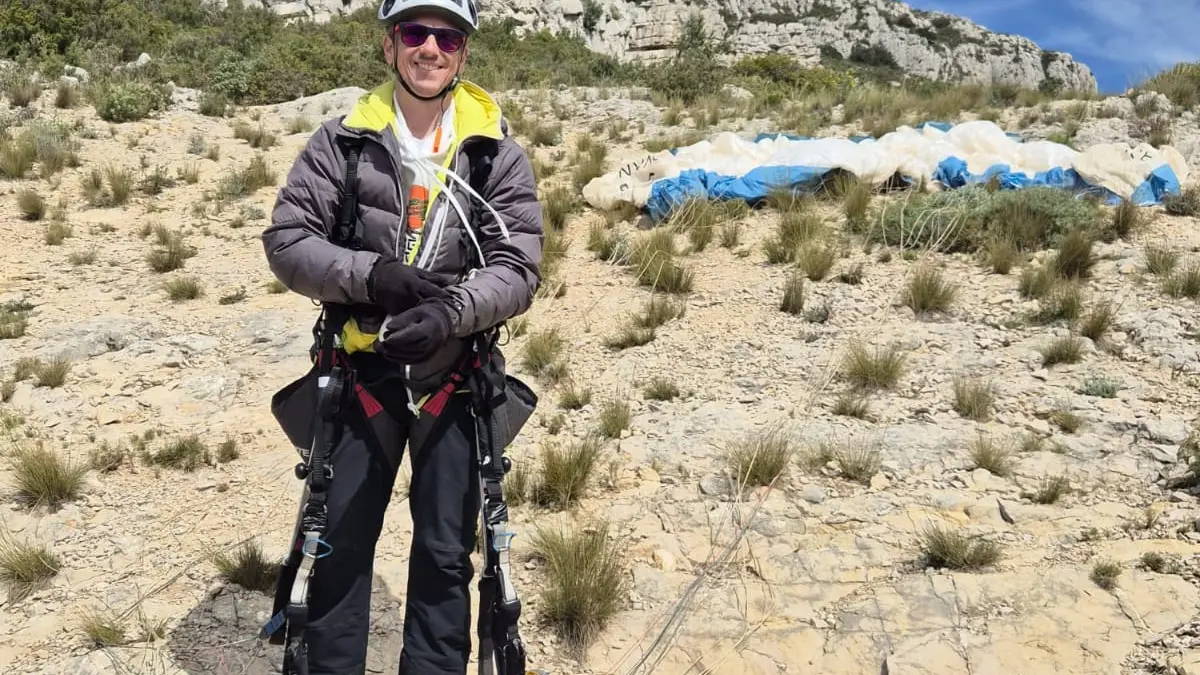 Equipement fourni : le nécessaire pour le vol (sellette de parapente et casque).
